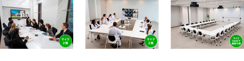 部屋のレイアウトや大きさ・参加人数に合わせてマイクの増設が可能です。